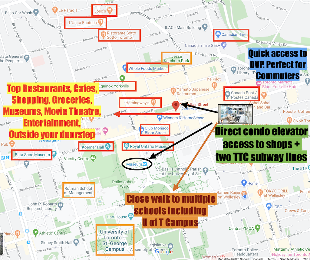 This Prime Location Right at Yonge & Bloor Has Direct Underground Elevator Access to Two TTC Subway Lines, Approximately 50,000 SQ FT of World-Class Condo Amenities, Direct Underground Access to Shops, Restaurants, and Groceries!! You Don't Have to Step Outside in Our Cold Winters or Humid Summers! ☃️☀️