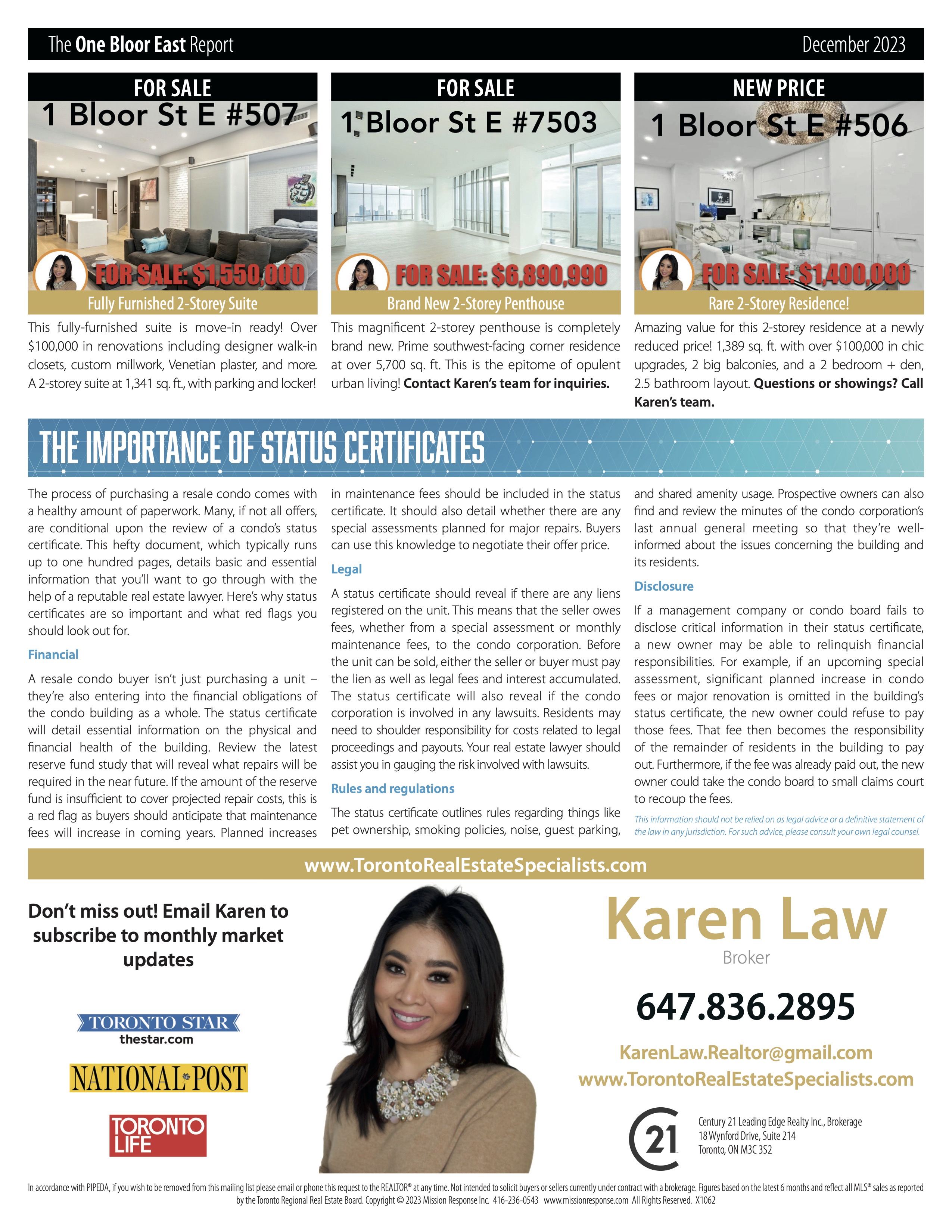 1 Bloor Toronto. 1 Bloor Street. What is a condo status certificate? Highest customer rated real estate agents in Toronto