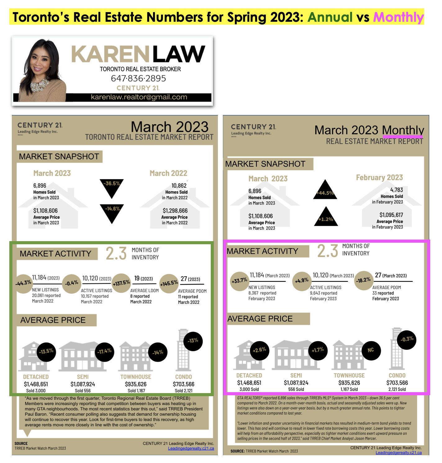 *continuing with the trend we saw in February, entry-level priced properties throughout the GTA that are priced below $1M continue to receive the strongest demand. And those entry-level priced properties that are showing well are experiencing many multiple offers. If you are looking to successfully sell an entry-level priced property, consider holding off offers for 5-7 days to help drive in multiple offers. It is also to your benefit to work with a real estate team that offers a pre-marketing period where the property is extensively marketed before the official launch date in order to attract more potential buyers during those 5-7 days on the market: contact Karen's team by clicking here, to learn about our successful pre-marketing strategies.
