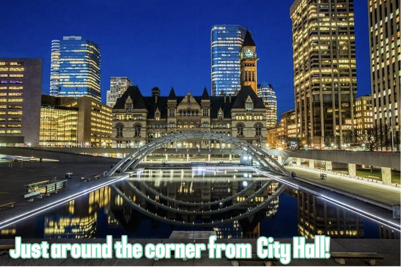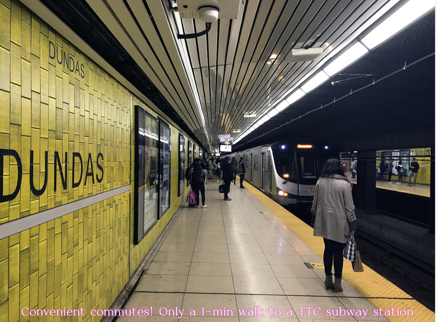 ⭐️️ Unbeatable location in the heart of Downtown Toronto across the street from the vibrant & iconic Yonge-Dundas Square. A super quick 1-min walk to Eaton Centre Shopping Mall and the TTC subway station (perfect for commuting), close walking distance to two major universities, the Financial District, the UHN Hospital Network and so much more!