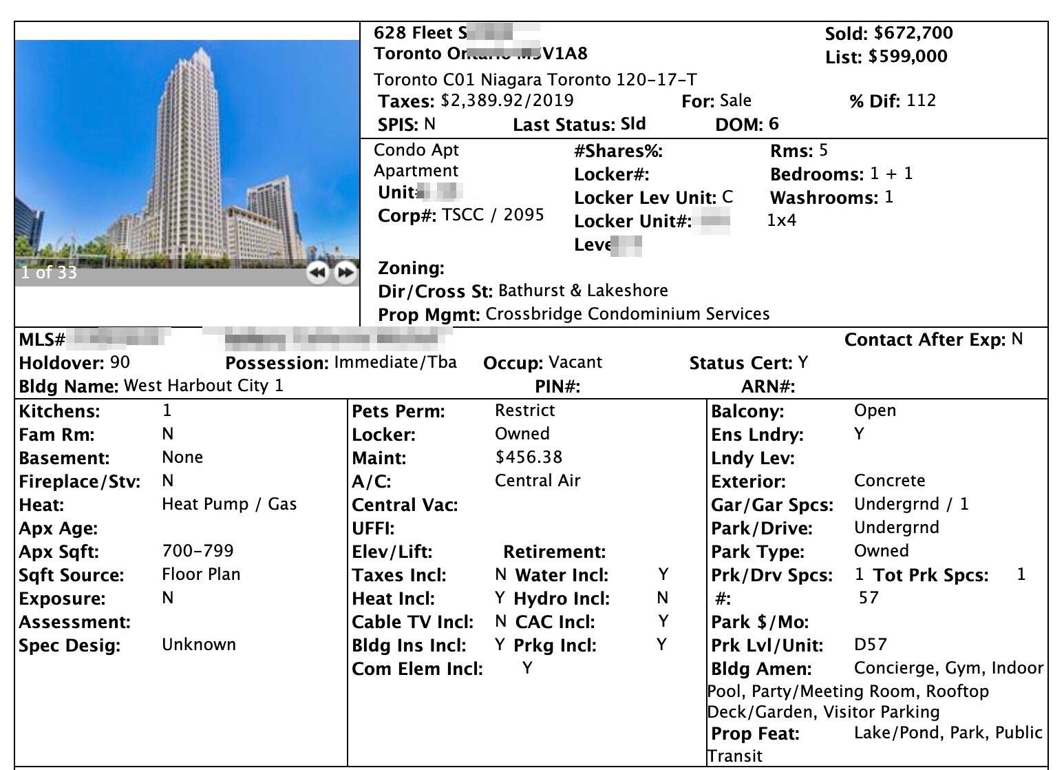 The average condo in Toronto costs $672,465. For our calculations let's use this condo as an example, since it recently sold for $672,700.
