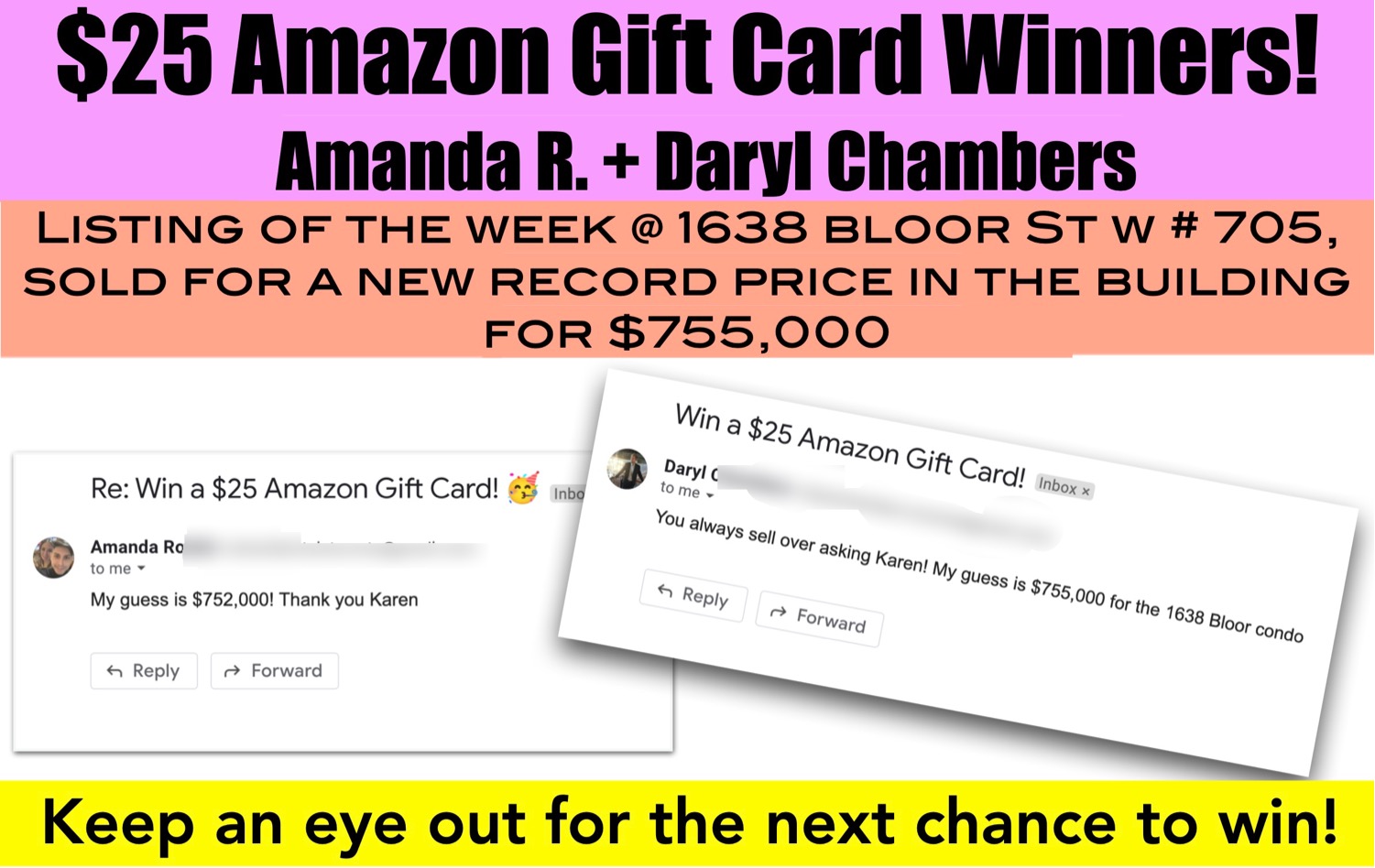 Congratulations to our winners Daryl C. who guessed $755,000 and Amanda R. who guessed $752,000! ![🥳]()